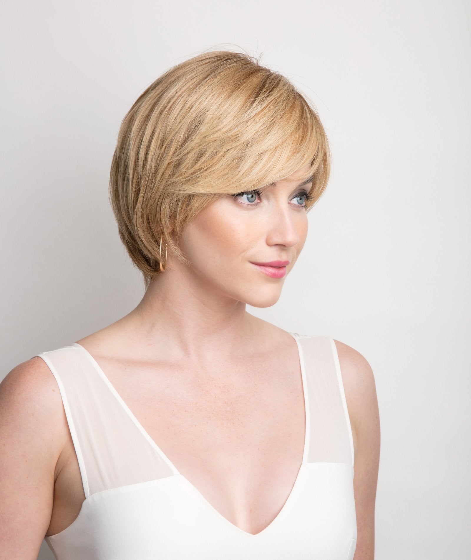 Angel from the Fair Fashion Collection is a short-length human hair wig that features a straight, ready-to-wear design with a layered, youthful cut for a modern look. Lightweight and extremely natural-looking, Angel is crafted with a Basic Cap that includes a monofilament top. This handcrafted cap mimics the appearance of hair growing directly from the scalp while providing excellent ventilation for comfort.