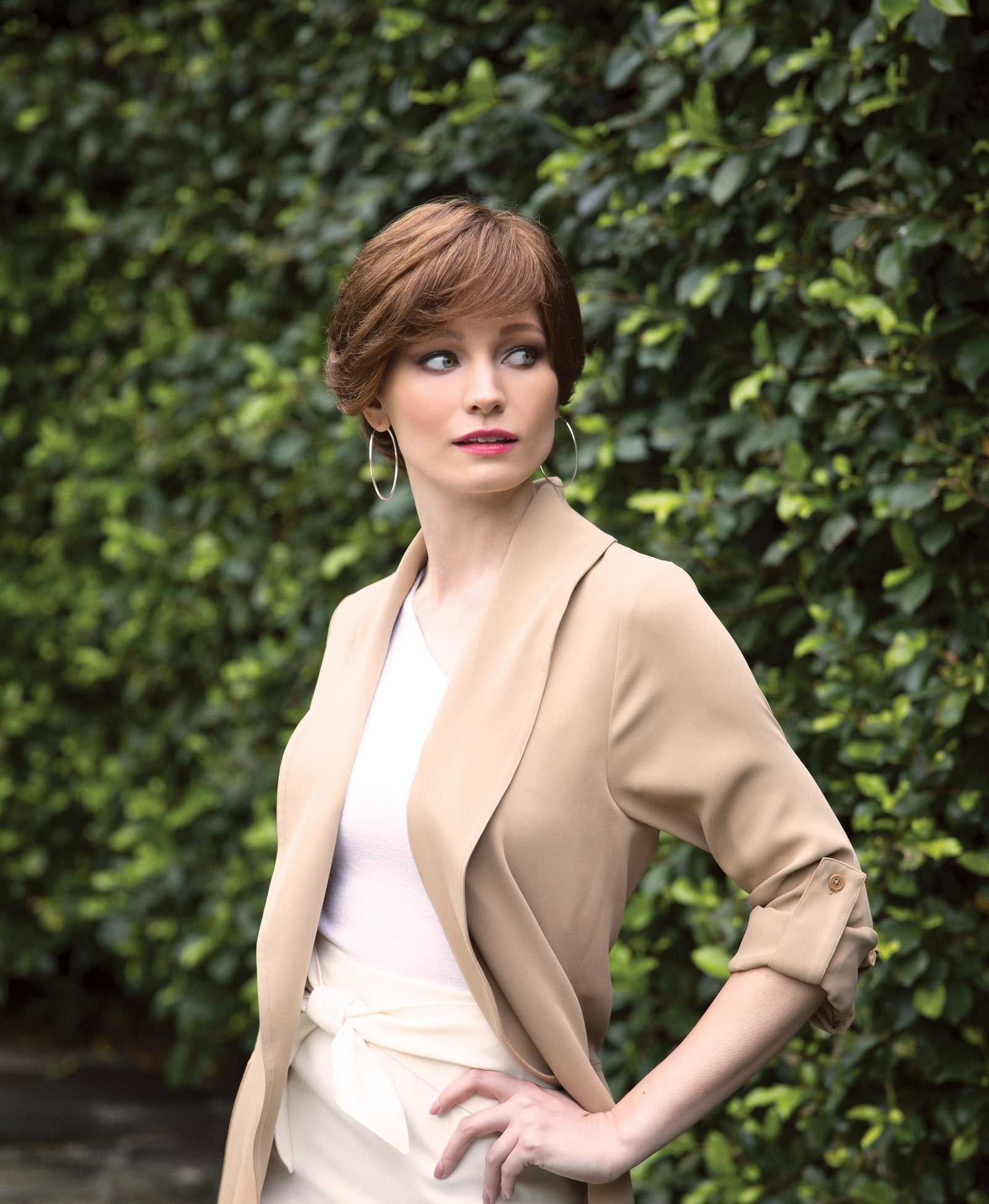 Brenda from the Fair Fashion Collection is a short-length human hair wig. This straight, ready-to-wear wig features a youthful short cut that can be styled in numerous ways. Brenda comes with a Confidence Cap that includes a lace front, specifically designed for those experiencing temporary hair loss. The Confidence Cap is 100% hand-tied, featuring silicone strips for a secure hold and a monofilament top for added comfort and natural appearance.