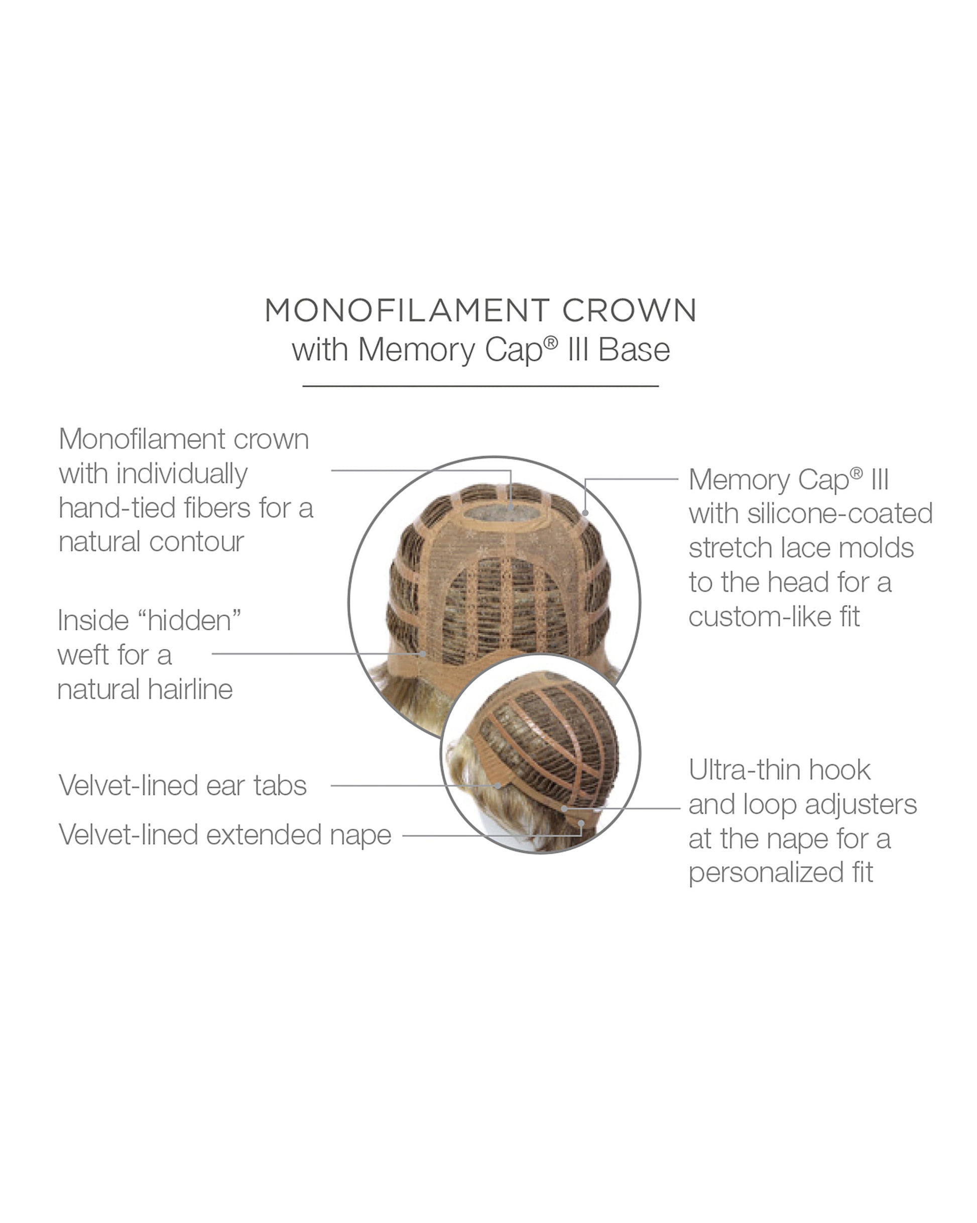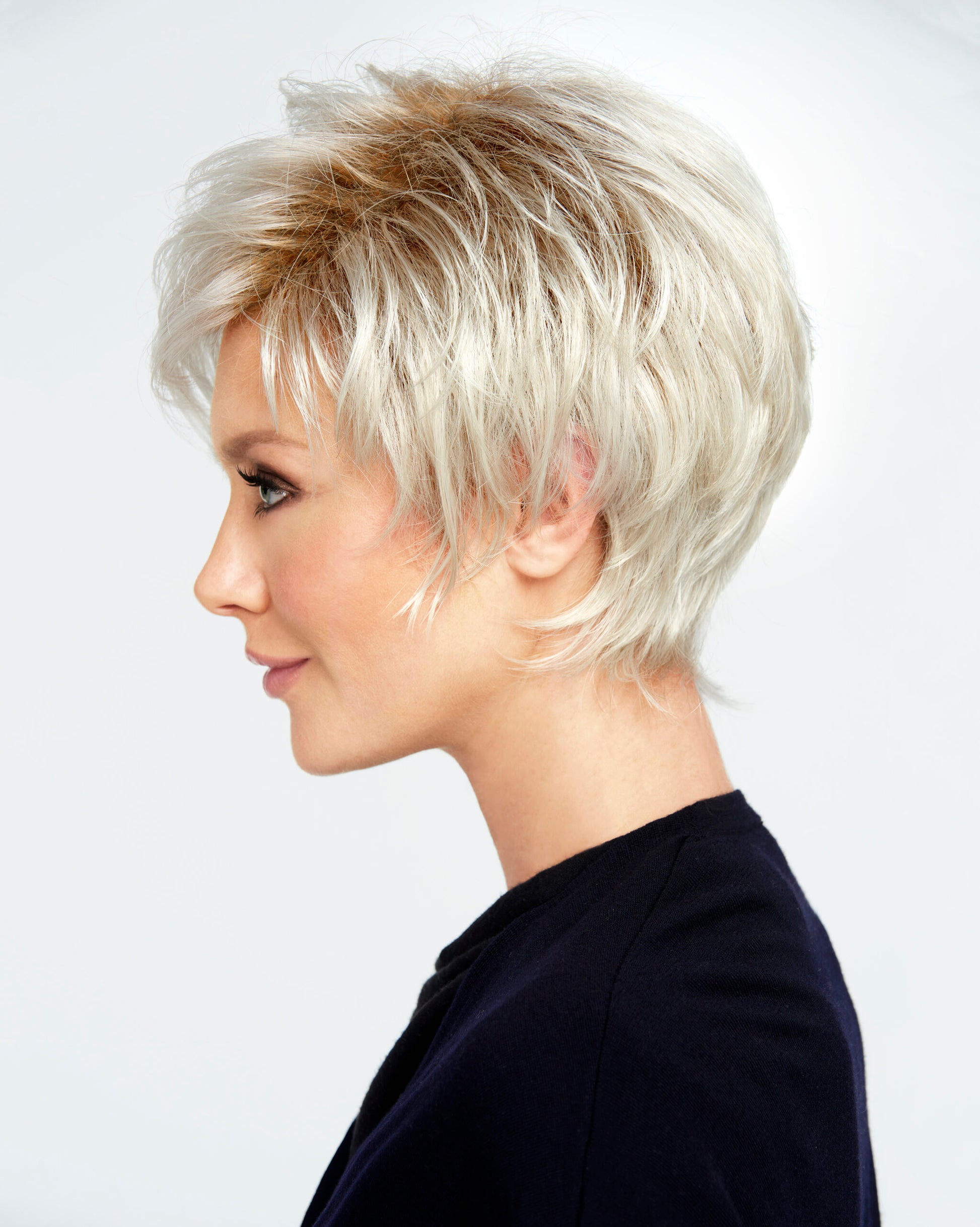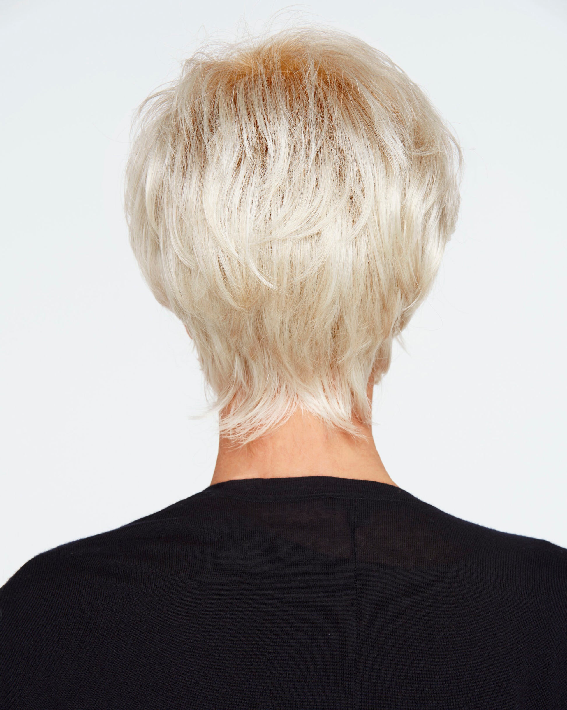 A short look that’s long on style, this slightly waved, textured cut is punctuated with layered lengths throughout for natural movement and maximum styling options. Soft tendrils around the face and crown can be styled onto the face or brushed away. Longer, shattered pieces at the extended nape add softness and finesse. The Sheer Indulgence™ monofilament crown provides a natural contour.