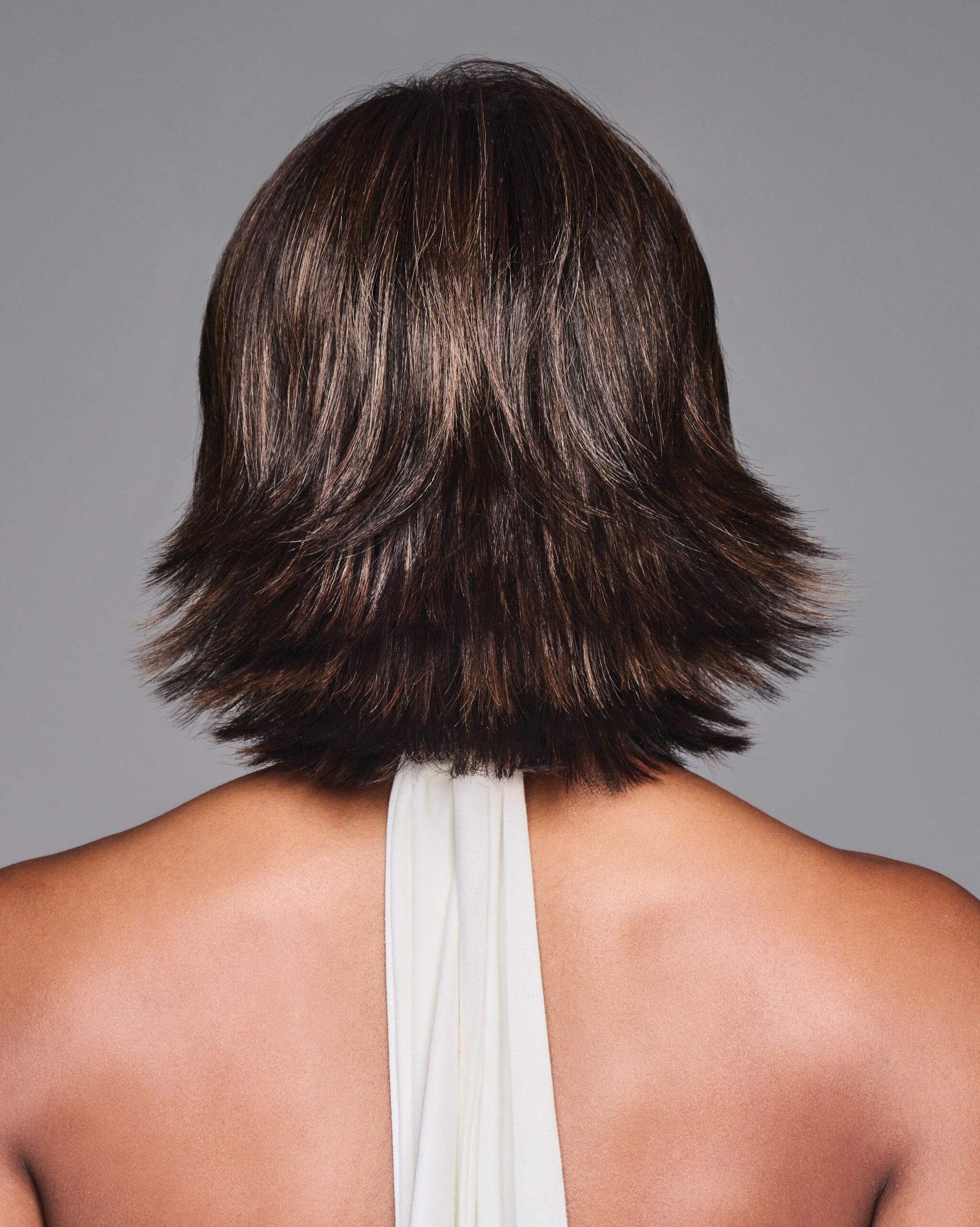 Chloe is a smart, textured shaggy look with razor-cut pieces throughout and a sultry eyelash bang. With a full monofilament top, this style offers natural movement and the ability to part wherever you like, combining effortless style with versatility.