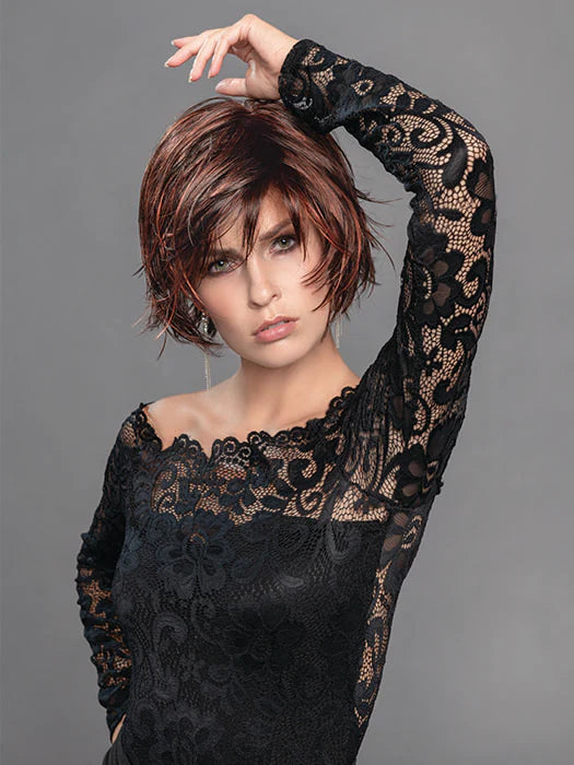 Echo from the Perucci Collection is a modern bob-style wig that makes a bold statement with its long bangs. This chic cut features an irregular yet perfectly styled silhouette that adds a youthful charm. Echo is part of the Ellen Wille Perucci Collection, showcasing the next generation of wigs that blend style with comfort.