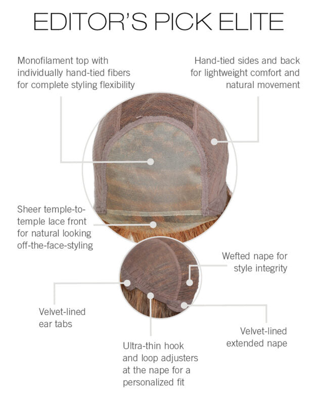 Cap Construction: Temple-To-Temple Lace Front, Monofilament Top, Hand-Tied Base, Wefted Nape, Velvet-Lined Ear Tabs, Velvet-Lined Extended Nape