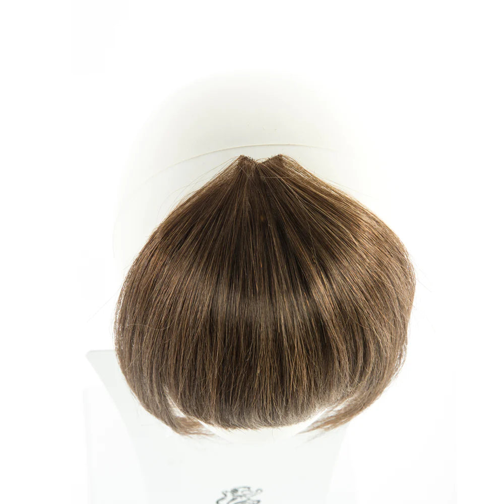 The Hand-Tied Top V Tip Feather Bang is an easy, clip-in doll face bang with a V-shaped crown tip for a natural blend into the crown parting. Completely invisible and undetectable, it’s perfect for covering large foreheads, receding frontal or temple areas, or creating a quick style transition.