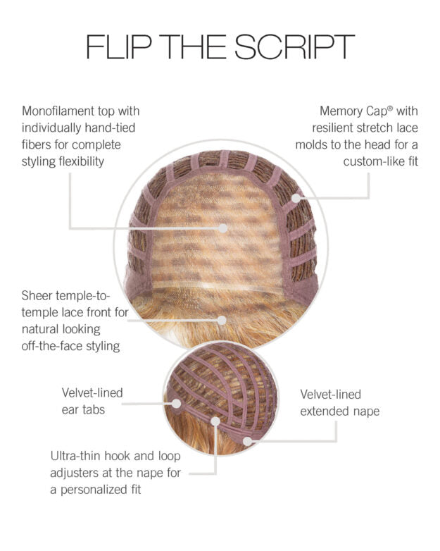 Cap Construction: Temple-to-Temple Lace Front, Monofilament Top, Memory Cap®, Velvet-Lined Ear Tabs, Velvet-Lined Extended Nape