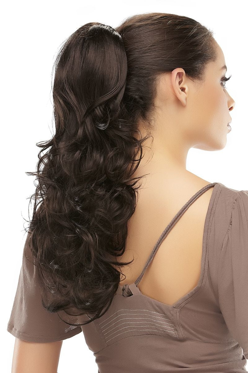 Foxy is an extra-long, clip-in ponytail that easily clips on with a claw comb or optional drawstring bun base. Foxy adds instant glamour to any style with its length and beautiful waves