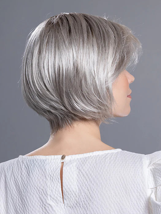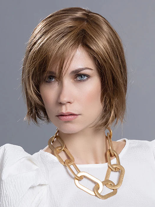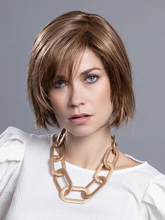 The French Wig from the Changes Collection by Ellen Wille is a chic, short bob that blends classic style with modern flair. This straight synthetic wig features an invisible lace front hairline and a monofilament part, creating a natural appearance that mimics real hair movement. The bob sits just off the neckline, with slightly textured ends adding a playful twist to the timeless look. Perfect for those seeking a fun and flirty update on the classic bob.