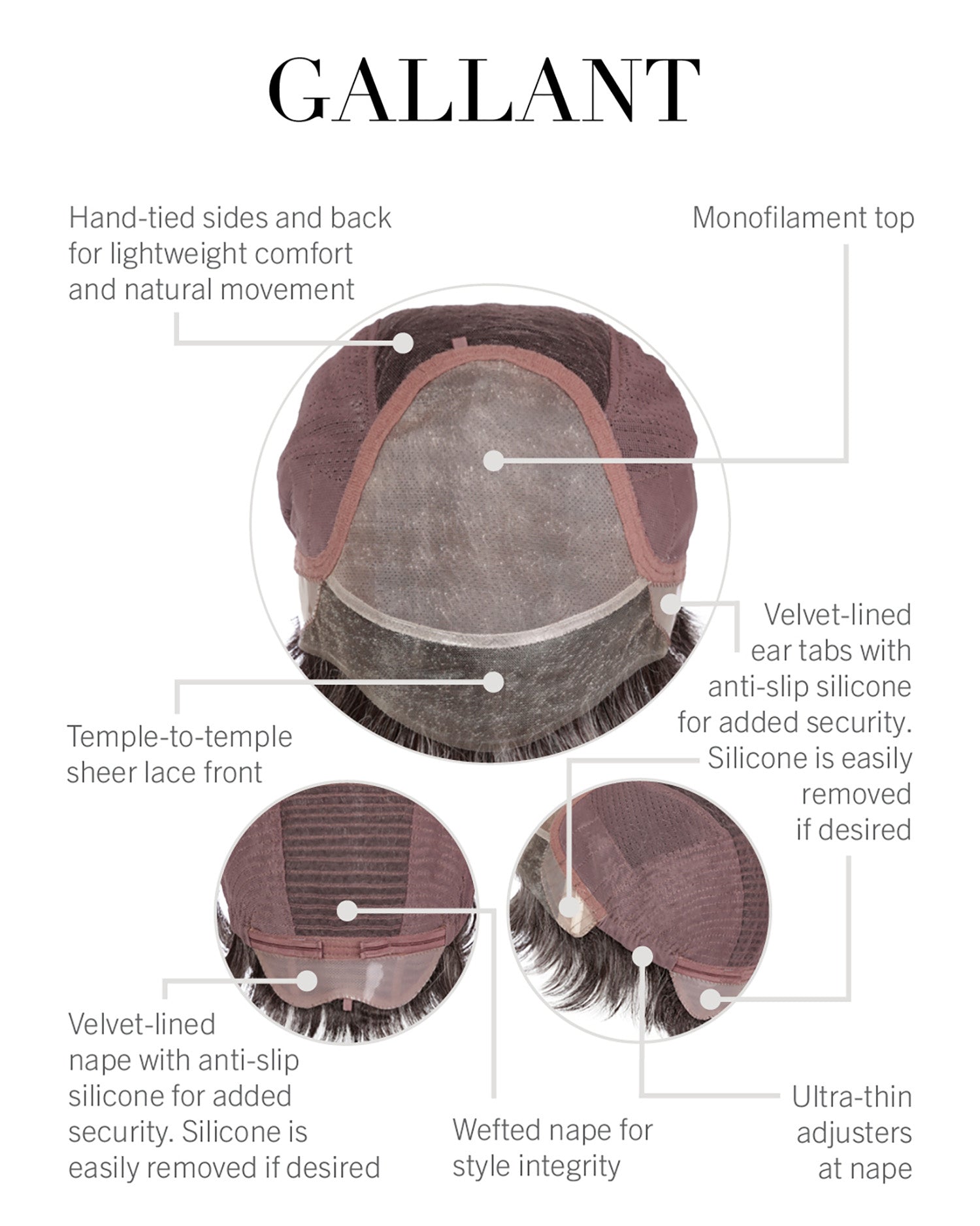 Cap Construction: Temple-To-Temple Lace Front, Monofilament Top, Hand-Tied Base, Anti-Slip Silicone-Lined Ear Tabs, Anti-Slip Silicone-Lined Extended Nape