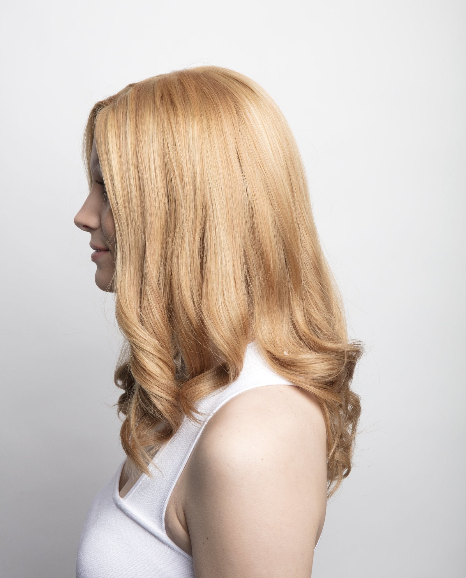 Giada from the Fair Fashion Collection is a mid-length human hair wig. This curly, ready-to-wear wig perfectly contours the face, falling gracefully onto the shoulders and down the back with natural movement. Giada features a Natural Cap with a lace front, ensuring breathability and a comfortable fit for the wearer. The top section is crafted with a special lace mesh that conceals the knots, giving the appearance of hair growing directly from the scalp for a very natural look. Additional features of the Natural Cap include its 100% hand-tied construction and polyurethane patches, allowing for optional use of double-sided tape.