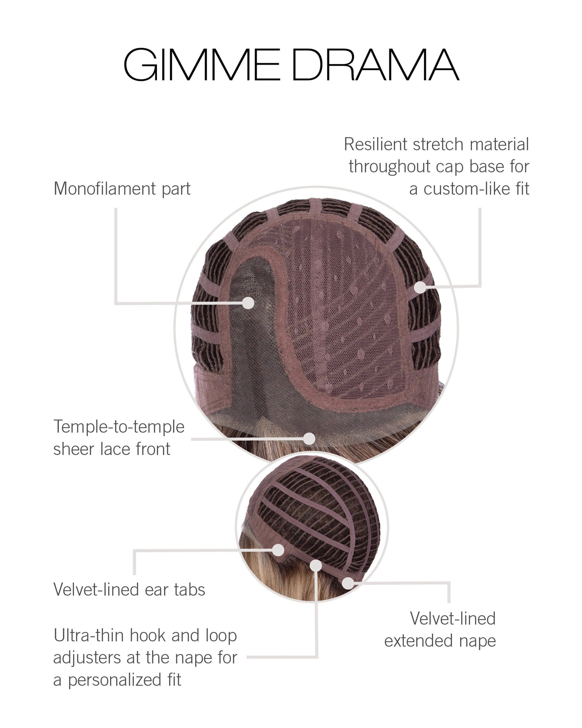 Cap Construction: Temple-to-Temple Lace Front, Monofilament Part, Velvet-Lined Ear Tabs, Velvet-Lined Extended Nape