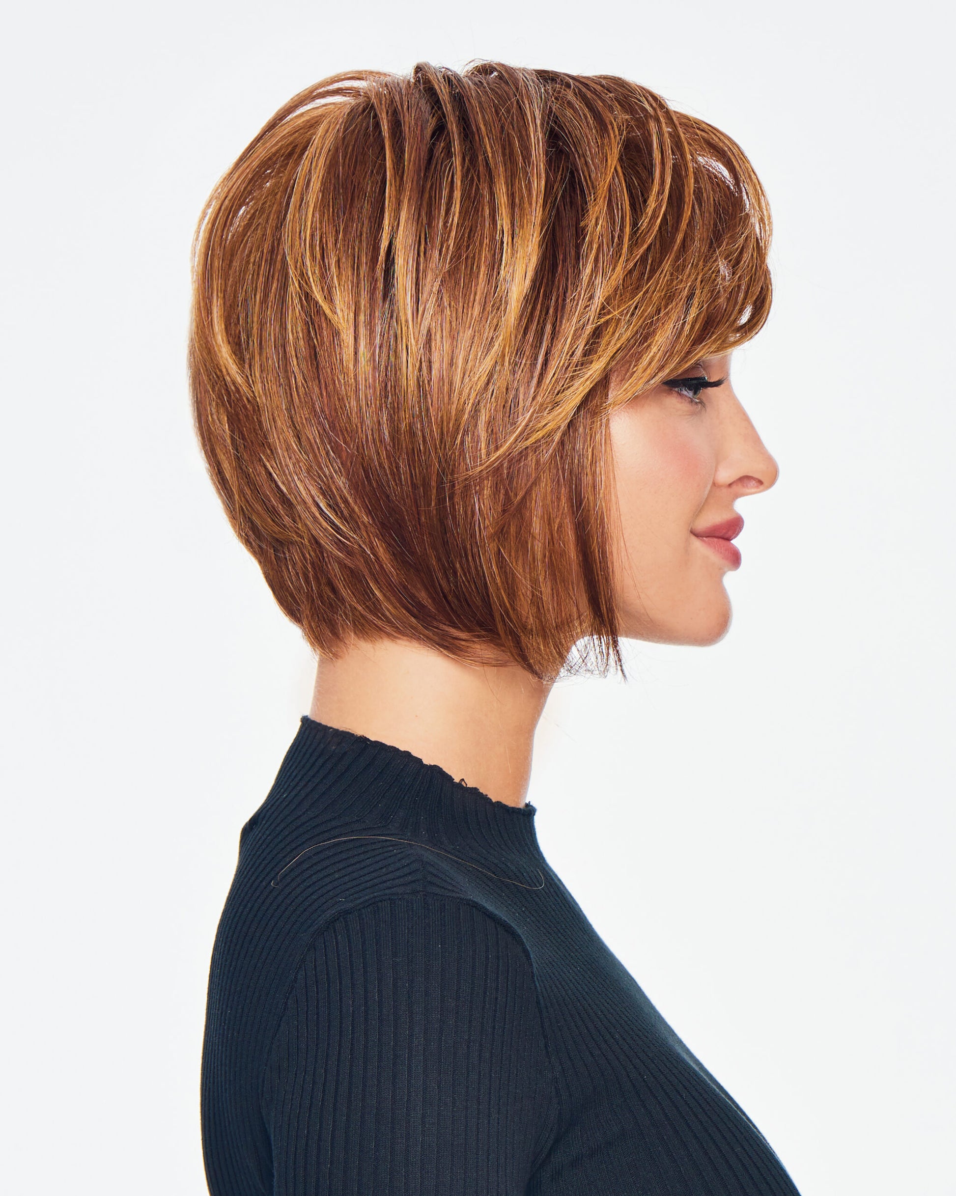 Graceful Bob is a chic, timeless style that keeps it cool and classic with a cut that never goes out of fashion. This short bob features curved ends that look flattering from every angle. The side bang and layering beautifully frame the face, highlighting your best features, making it one of the most flattering cuts available.