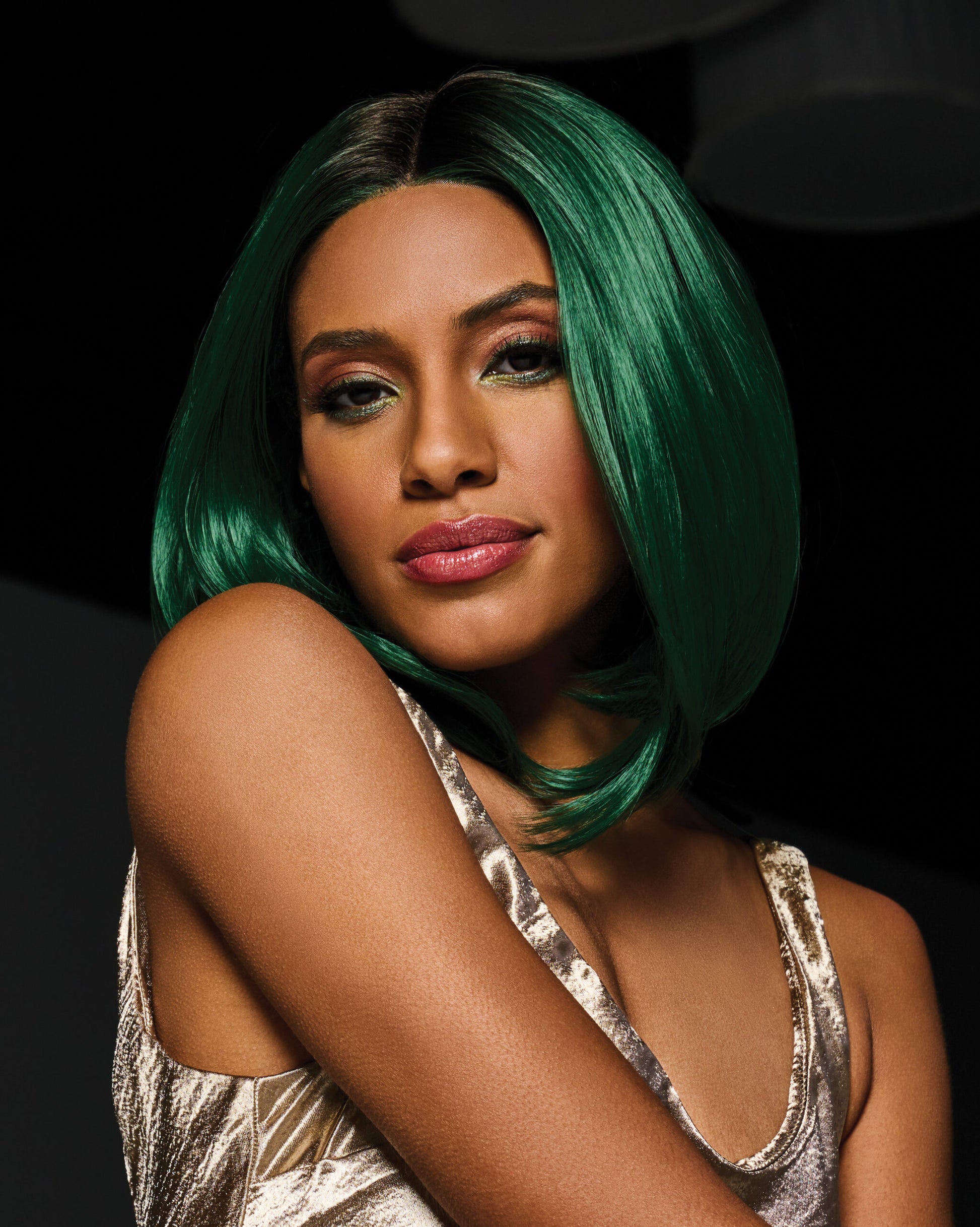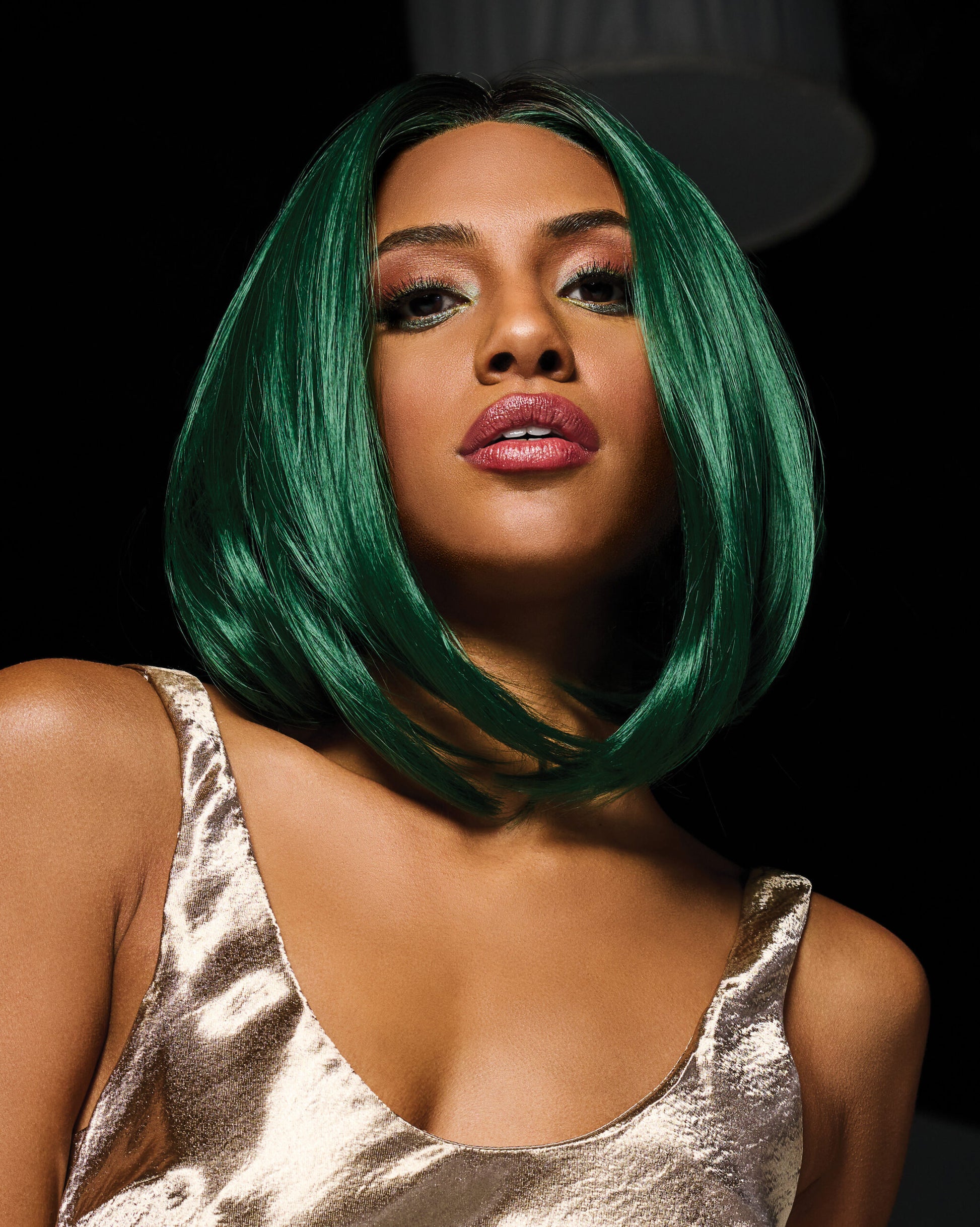 An enviable emerald shade makes this blunt bob a true gem. With its lace front hairline, center monofilament part, and dark root, you’ll dazzle from every angle. The heat-friendly Tru2Life fiber allows you to easily switch from straight to wavy with just a setting change.