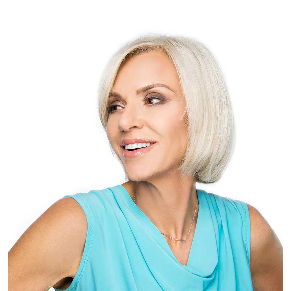 This fine, flowy mono top hair piece is designed to add an extra layer of lighter volume or to cover small to medium balding and receding areas. Its hand-tied parting creates a side-swept effect for a natural, stylish look. The invisible, breathable sheer base acts like a second skin, ensuring comfort and a secure fit. To customize the parting, lightly spray water on the area and blow-dry, flat iron, or steam it into the desired direction. For best results, a stylist should trim and cut the hairpiece to create a custom fit.