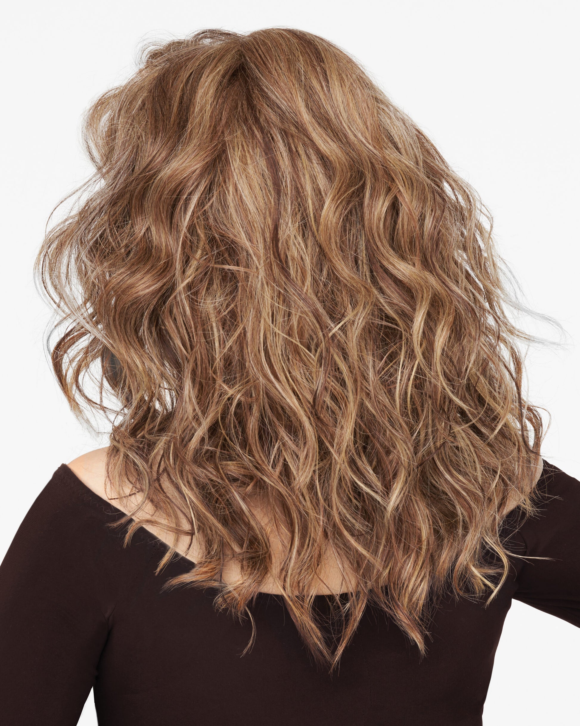 Power on with this long, layered look. The soft, casual beach wave texture is stylish enough for daywear and shifts into high gear glamour for evening. Temple to temple lace lets you style half up, half down, or pull into a low ponytail.