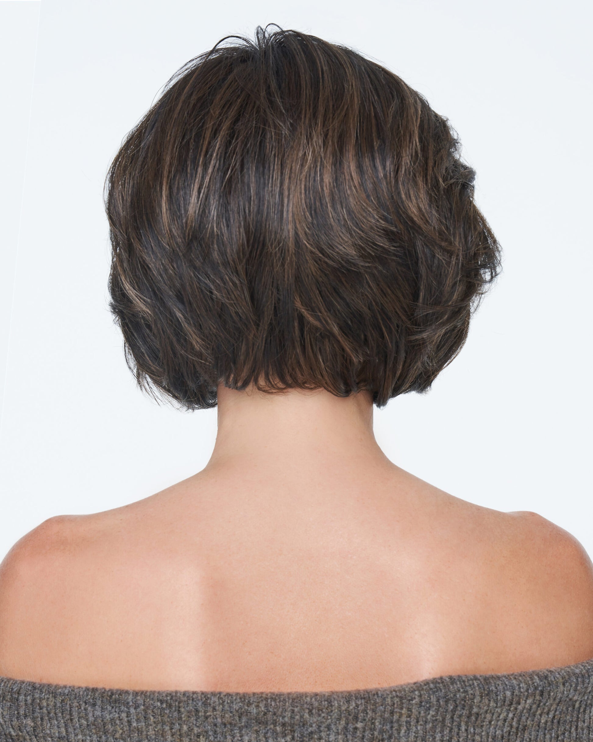 Multi-layering throughout this stacked bob lets you call the shots! A shorter crown with length in the front adds volume and offers varied styling options. Gentle waves sweep away from the face, creating fullness that can be brushed smooth, tucked behind one ear, or worn loose and tumbled.
