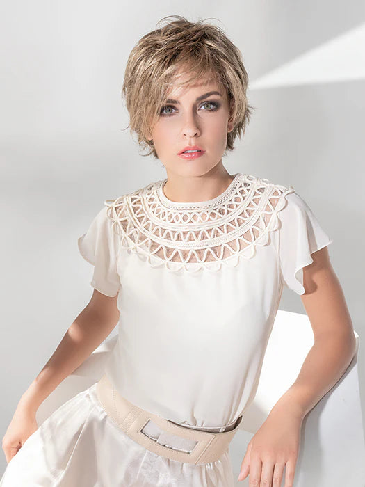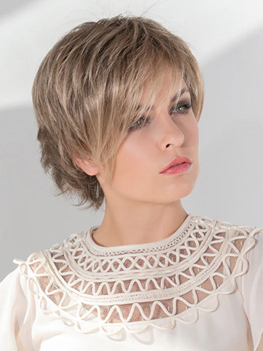 Joy by Ellen Wille from Hair Society Collection is designed to offer a trendy, elegant style. This short-length cut has a side-swept fringe that cascades along the side of the face. There are texturized layers in the back and nape area that can be styled flipped out or under. The lightweight density provides the ultimate comfort and feel! The impeccable ear-to-ear extended lace front offers styling versatility as well as a natural, seamless hairline. The premium synthetic fiber used to create the Joy mimics the look, feel, and movement of biological hair.