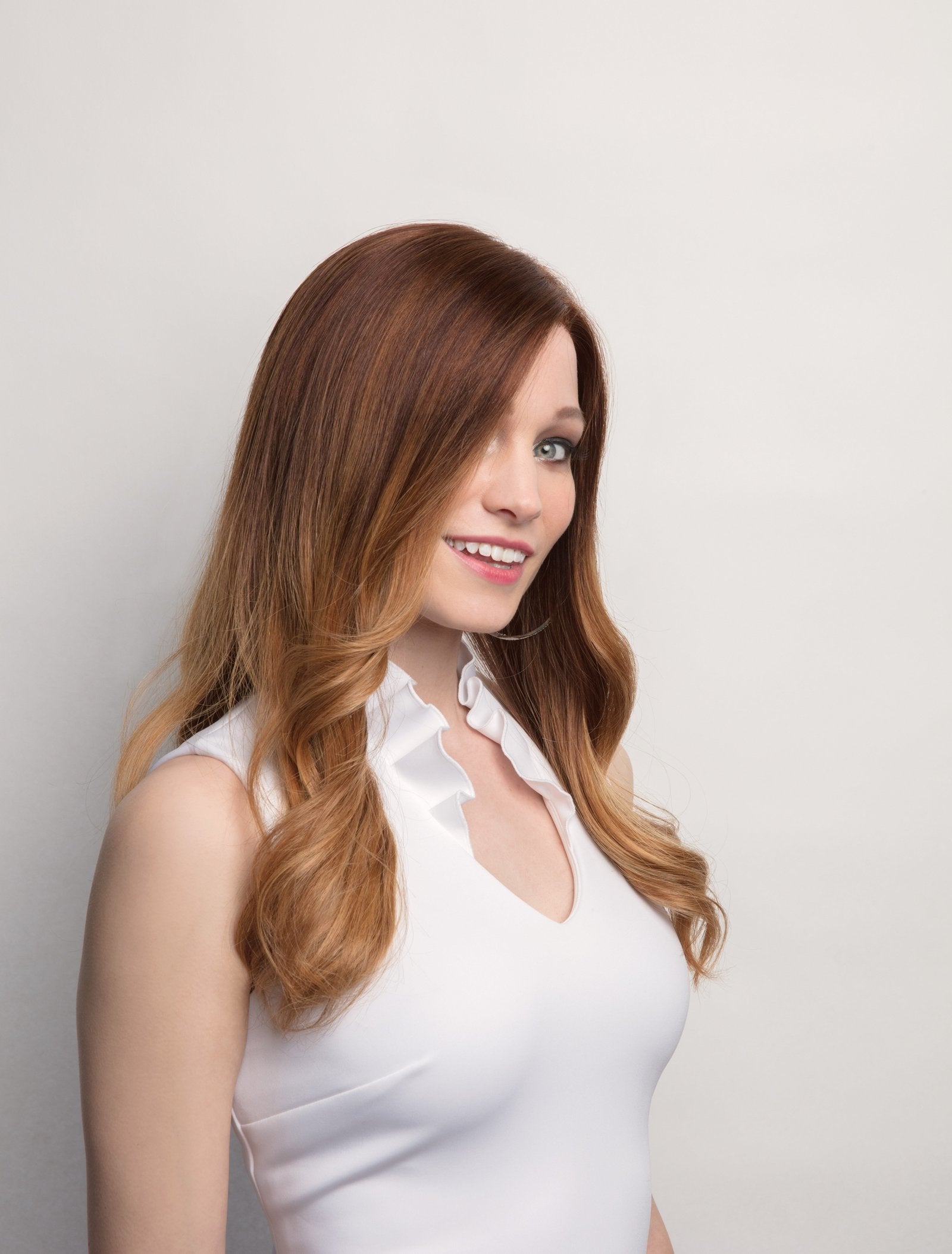 Lory from the Fair Fashion Collection is a long-length human hair wig. This straight, ready-to-wear wig exudes an exceptional air of femininity. Lory features a Confidence+ Cap with a lace front, specifically designed for those experiencing temporary hair loss. The Confidence+ Cap is 100% hand-tied and includes silicone strips for a stronger hold, a monofilament top, and a diamond net for enhanced comfort and breathability.