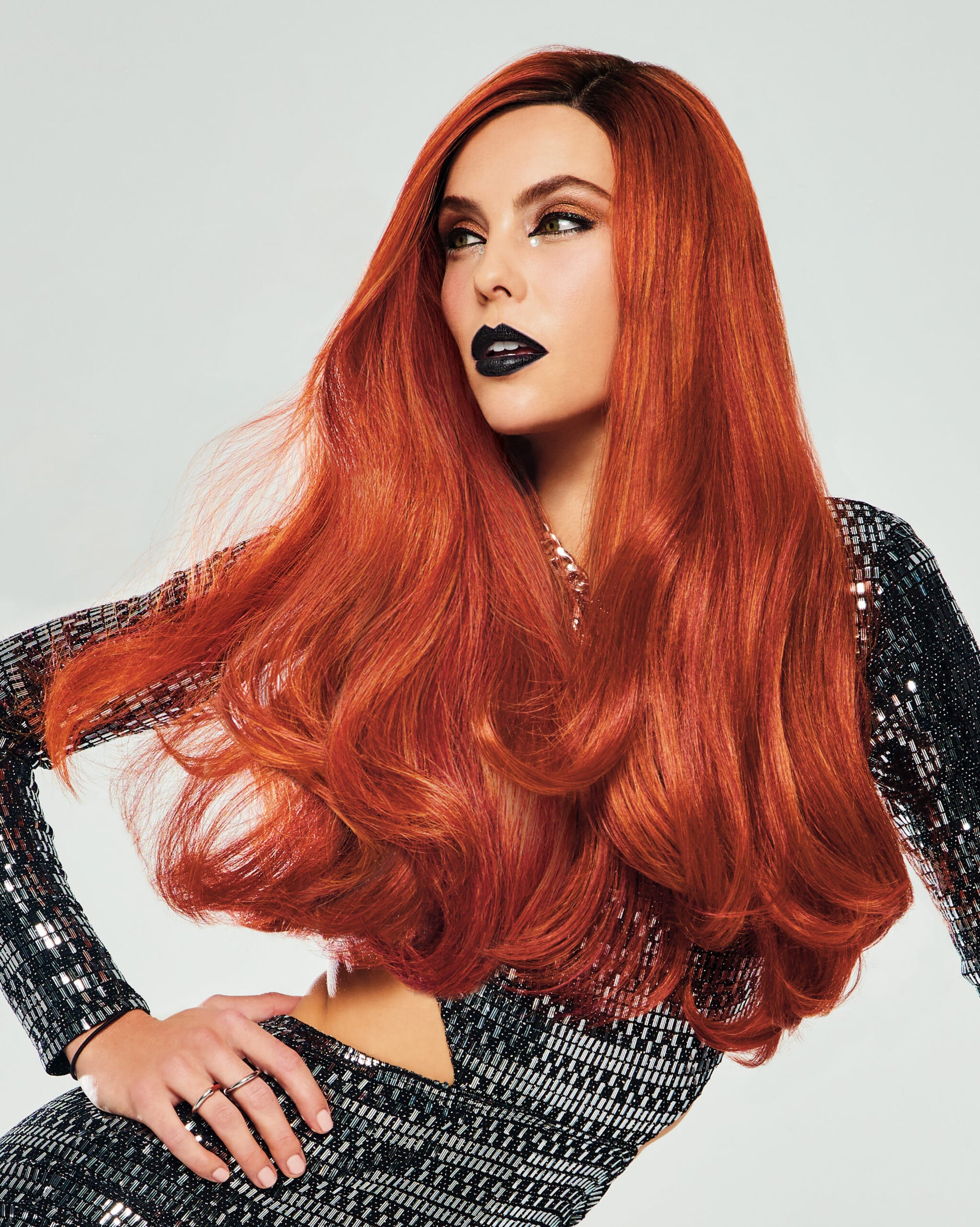 Bold and spicy-hot long, loose waves in a scroll-stopping shade of rooted red-orange. They’ll love your new look and you’ll love that it comes with no strings, no damage, no commitment. Vivid and red-hot without regular touch-ups? Sign me up!