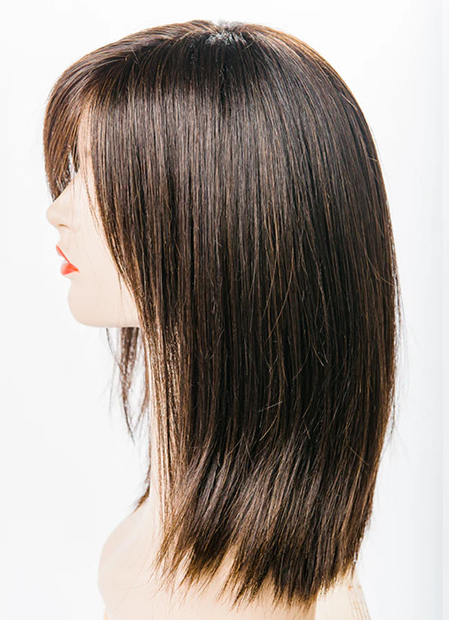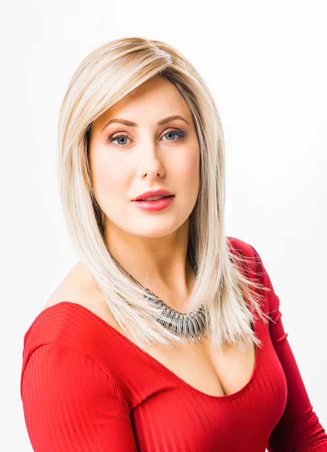 Megan from the Moda+Bella Collection is your go-to for effortless style and versatility. This shoulder-length, heat-friendly wig with long bangs lets you switch from sleek and straight to voluminous curls with ease. Its layered design adds natural movement and dimension, while the monofilament part mimics a natural hairline for a realistic look. The lace front ensures a seamless hairline, allowing you to style it off the face or with a chic side part. Whether for a formal event or daily wear, Megan delivers timeless elegance and the freedom to express your unique style with confidence.