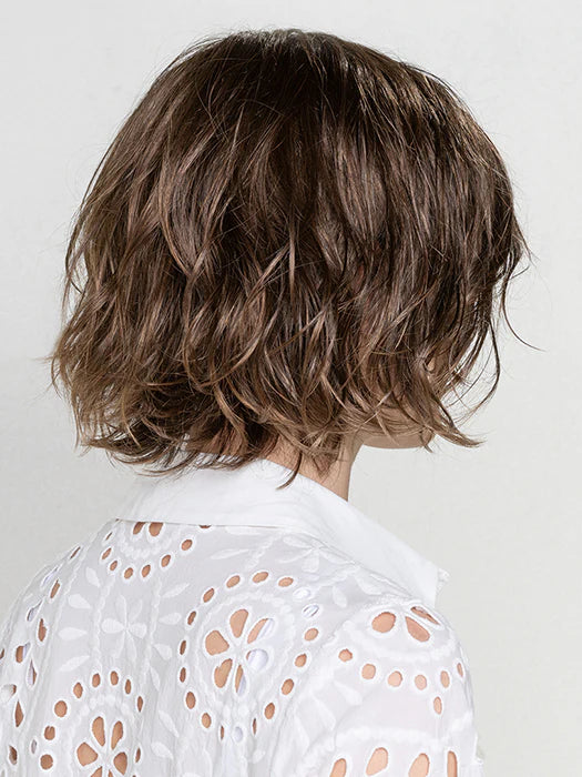Nola from the Modixx Collection is a stylish bob with open and natural waves, perfect for those who love light wear wigs. The fringe beautifully sweeps to the side, thanks to the left monofilament parting. This trendy piece features an extended lace front that ensures a natural-looking hairline from ear tab to ear tab, making it a go-to choice for a bohemian chic look.