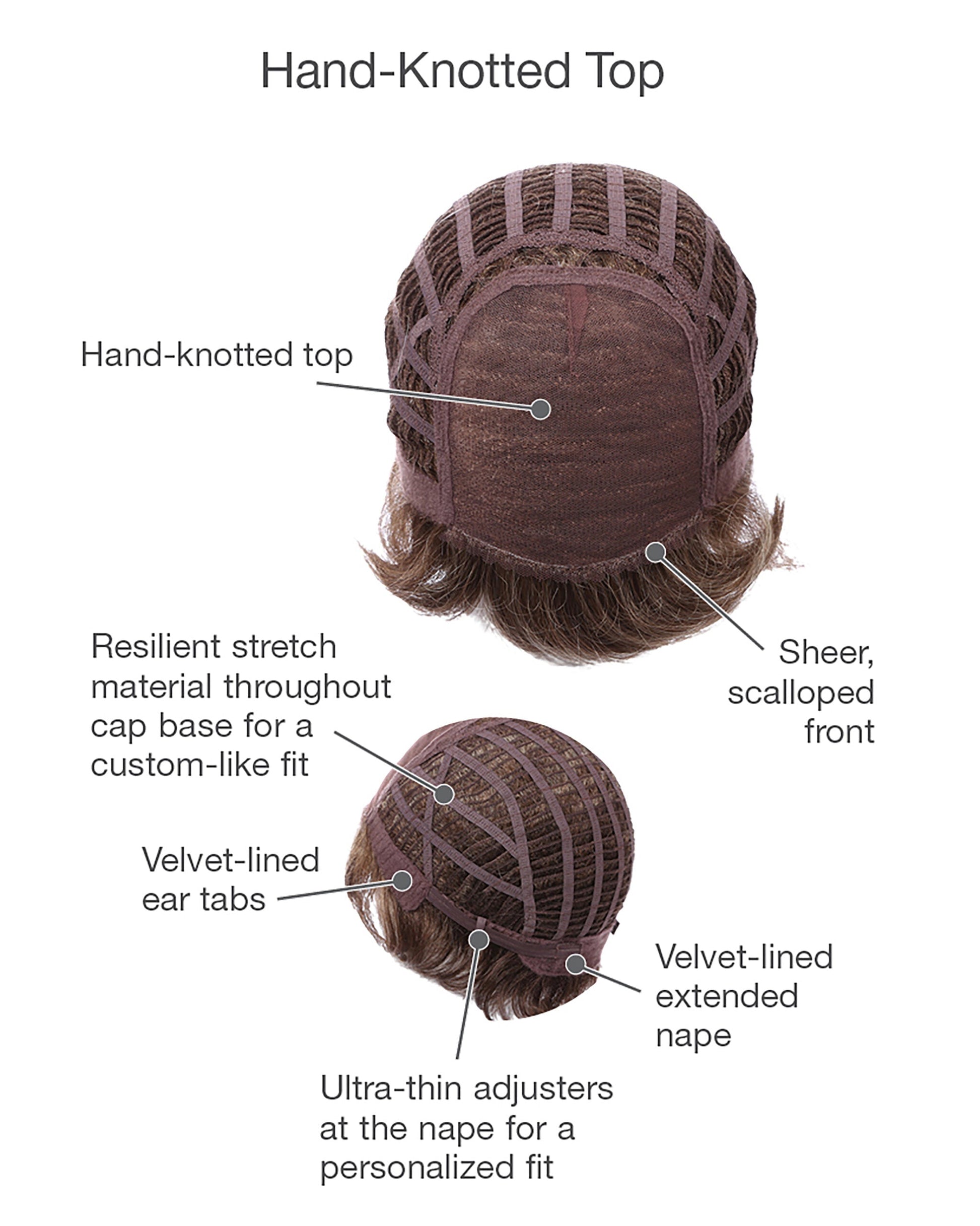 Cap Construction: Lace Front, Hand-Tied Top, Velvet-Lined Ear Tabs, Velvet-Lined Extended Nape