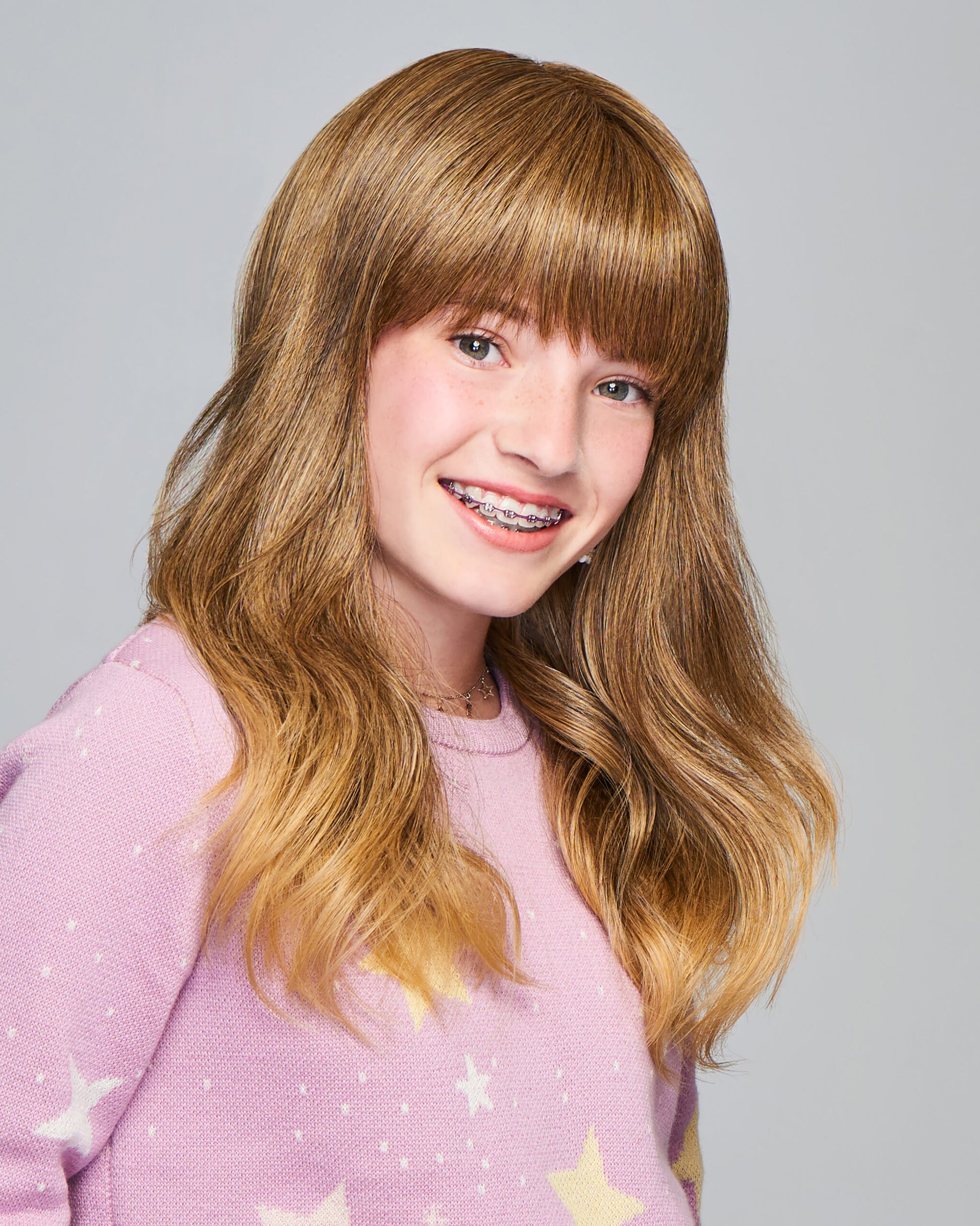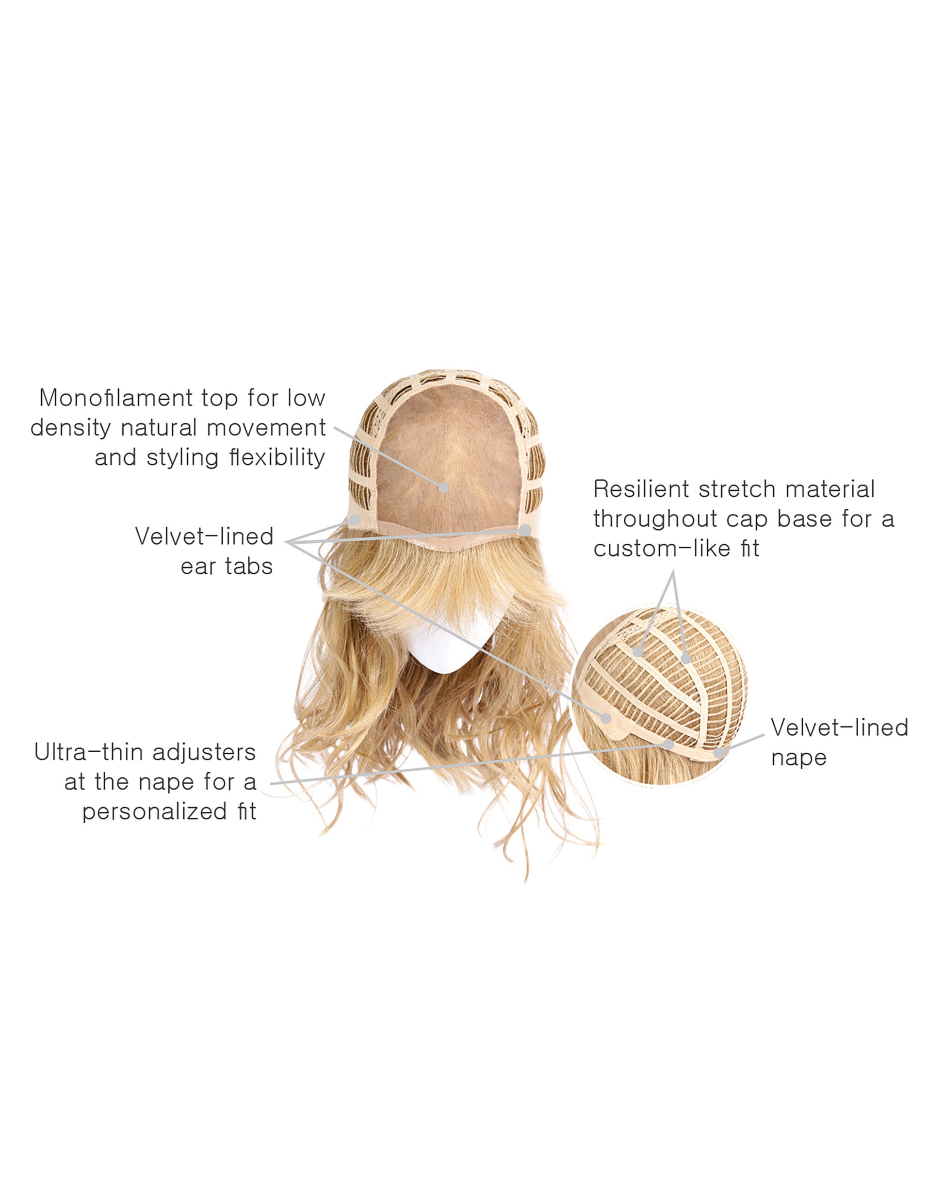Pretty in Layers is a long, wavy style that falls past the shoulders, perfect for creating a sporty low ponytail or wearing loose. The fun fringe can be parted or trimmed into blunt bangs for added versatility. Featuring Tru2Life® heat-friendly synthetic hair, this wig offers styling options while maintaining a natural look. The polyurethane front rim, monofilament top, velvet-lined ear tabs, and velvet-lined nape add comfort and a secure fit for all-day wear.