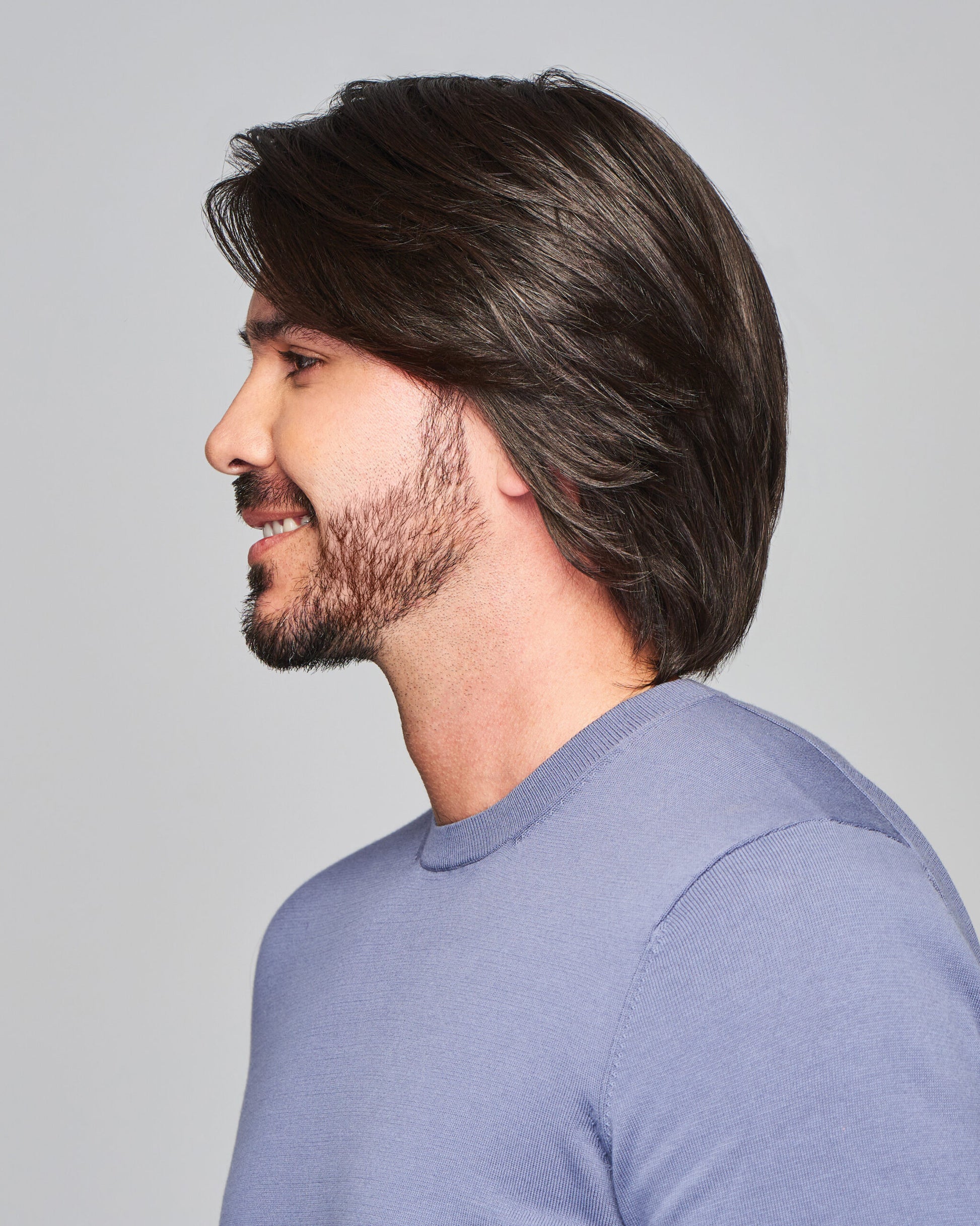Sharp has added length designed to be professionally cut and customized to suit his style. Try a texturized “surfer” cut or a more “rocker” look with razor-cut layers. The artfully crafted lace front looks just like the hairline he had, while the hand-tied monofilament top allows for a multitude of parting placements. The soft, hand-tied cap provides a light, cool feel that’s natural and versatile.