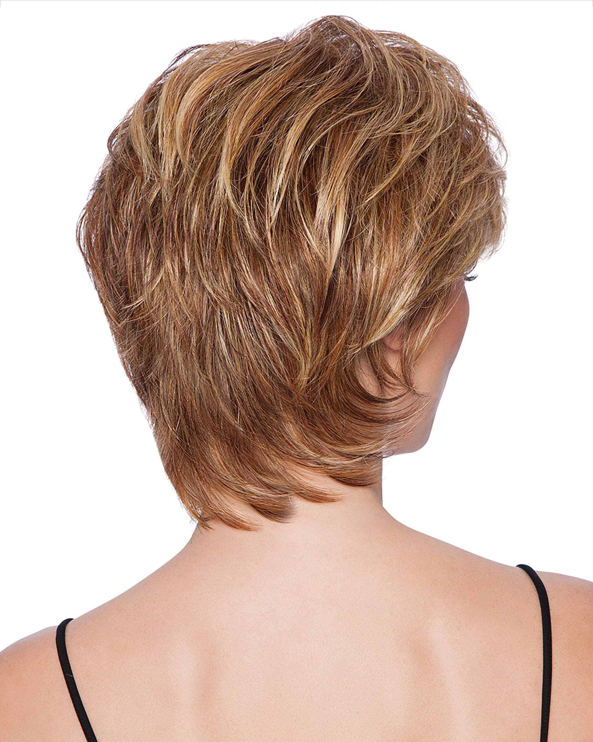 Get instant fullness and body with this naturally sculpted silhouette. This short tapered style offers a variety of styling options with its carefully placed textured lengths throughout the top and side areas. Neat, razor-cut lengths around the ears and nape add softness. The full fringe allows you to sweep the bangs to the side or onto the face.