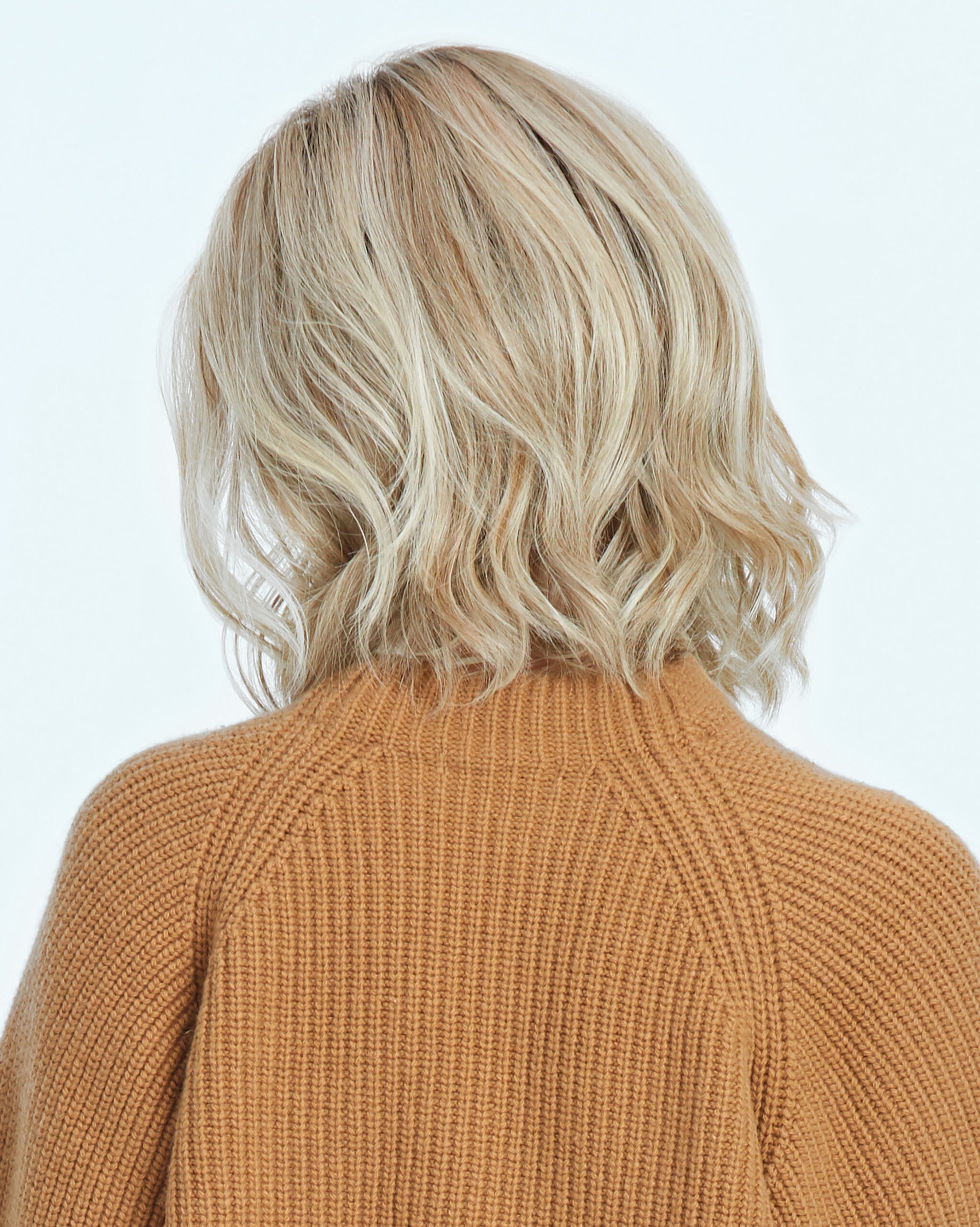 This light and airy style is an easy-to-wear mid-length “lob.” Gentle, unstructured waves and tapered ends make this the perfect undone, chic look.