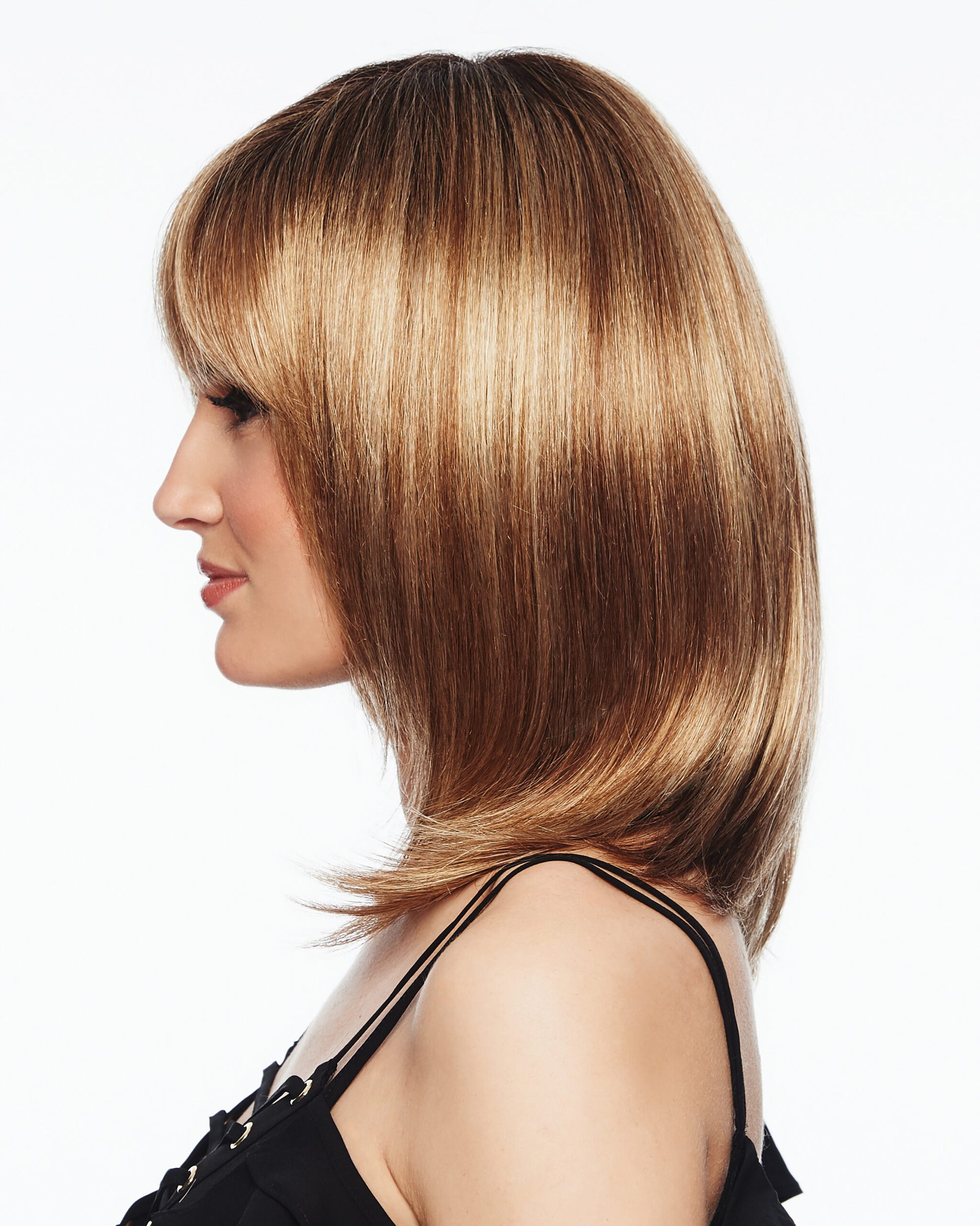 A longer style that begins without volume but is textured in a way that allows you to make it as voluminous as you like! The sweeping eyelash bang adds charm and sophistication. Feathery textured lengths are long enough to pop into a low ponytail or clip half up, half down. This style features Tru2Life® Heat-Friendly Synthetic Hair, offering versatile styling options.
