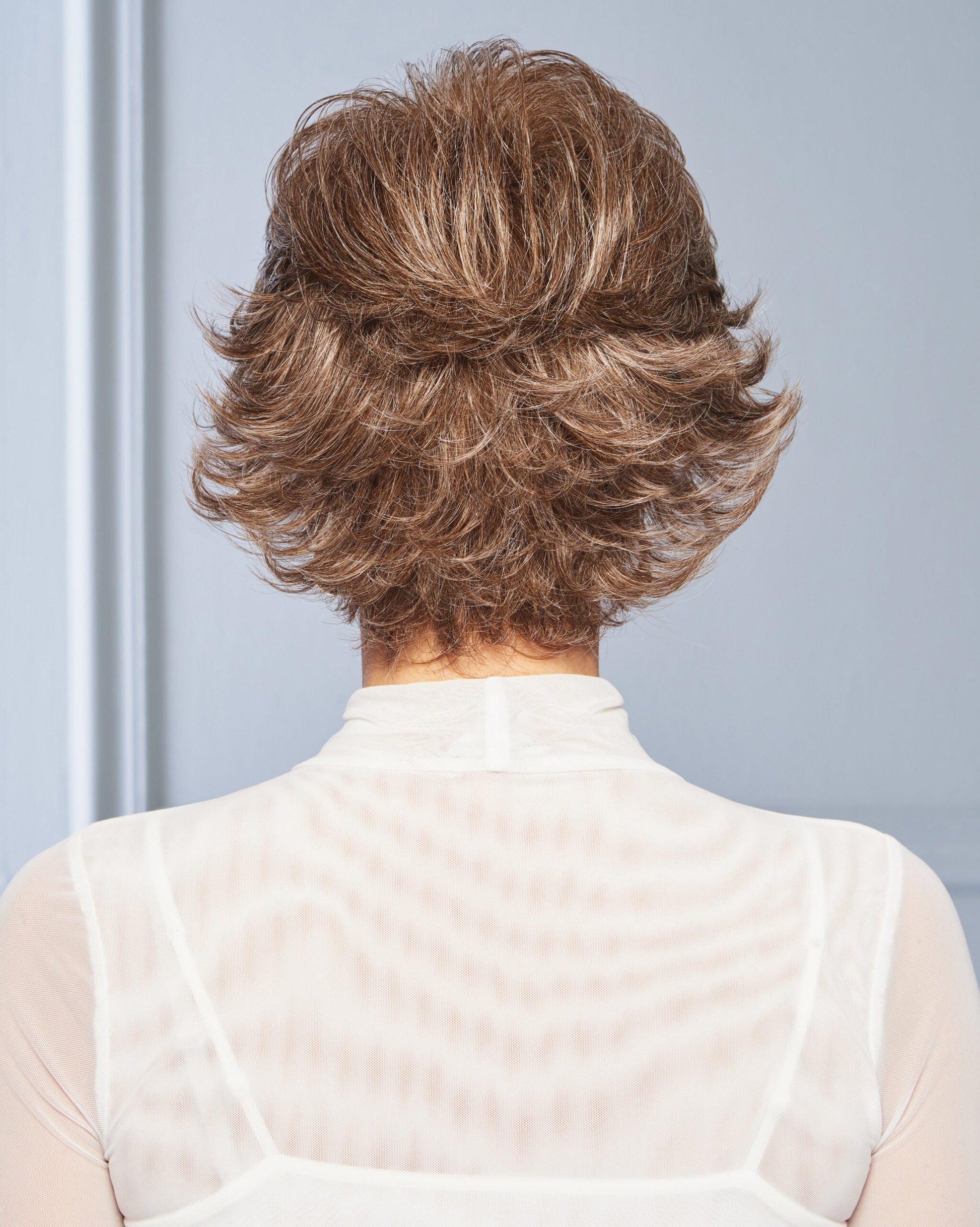 Spirit is a short silhouette with a wispy texture and razor-tapered layers, offering beautiful movement and lift. The gentle waves throughout flatter a variety of face shapes. Whether styled smooth and slick or fluffed up with flipped ends, this versatile cut provides effortless beauty.