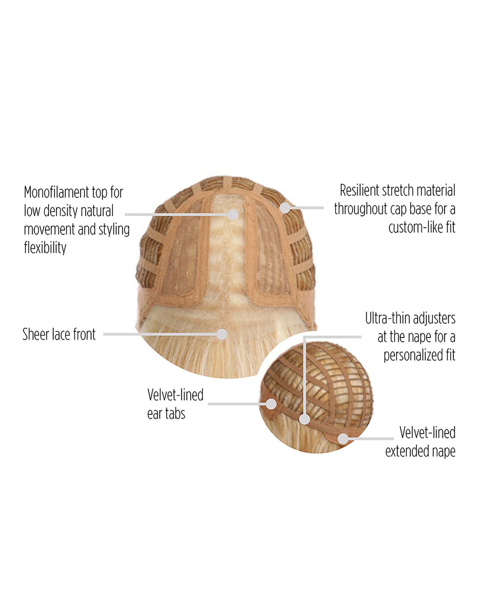 Cap Construction: Temple-To-Temple Lace Front, Monofilament Part, Velvet-Lined Ear Tabs, Velvet-Lined Extended Nape