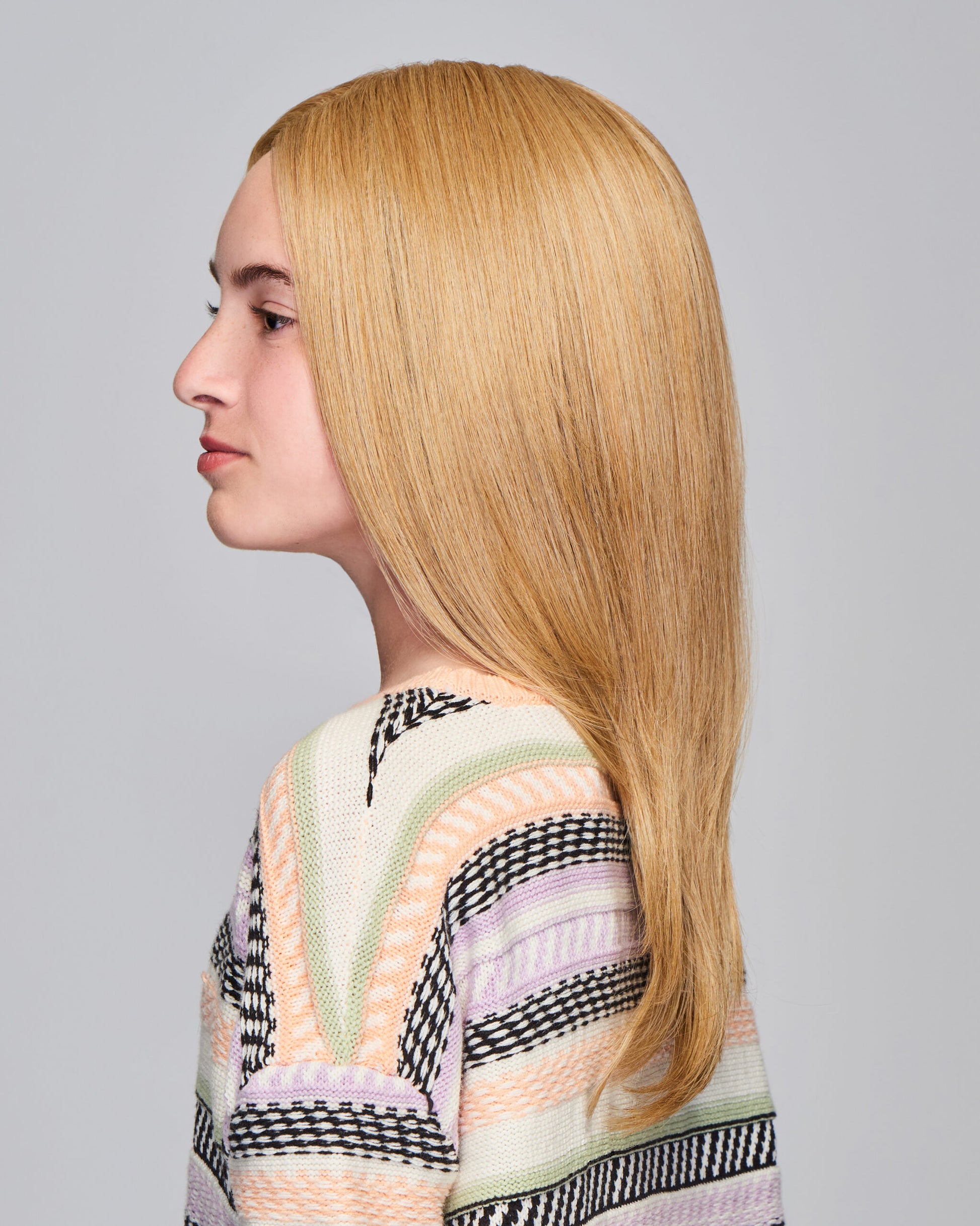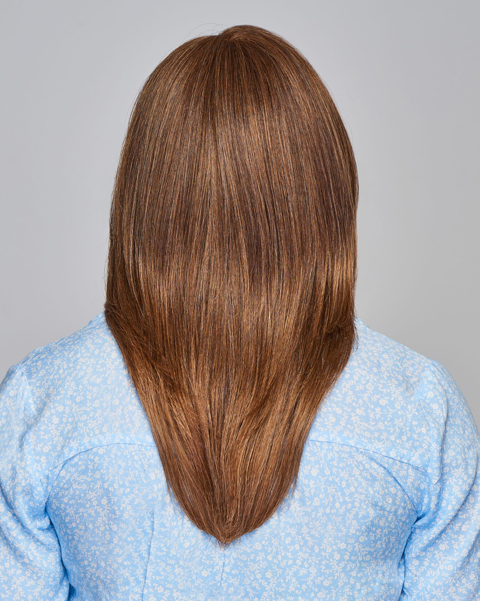 This perfectly sleek, long straight style earns top marks for its sheer lace front and natural-looking monofilament part. Classmates will never guess it’s a wig!