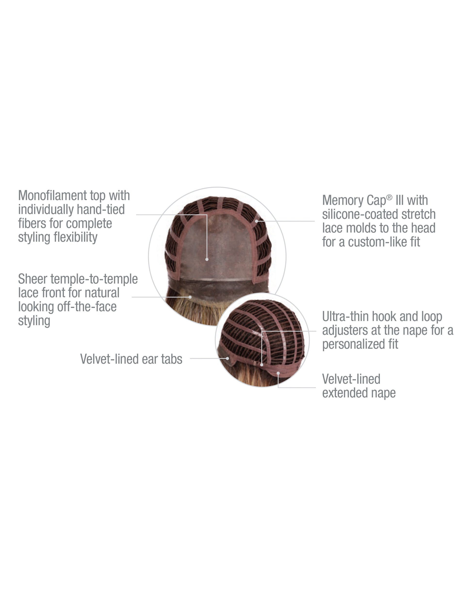 Tousled lush layers.. your invitation awaits. Unstructured. Understated. Undeniably sexy. Layered length with a natural wave is your ticket to full membership in the club where fashion is fabulous and so much fun. Try styling half-up, half down; the hand-tied top and temple-to-temple lace front offer beautiful versatility.