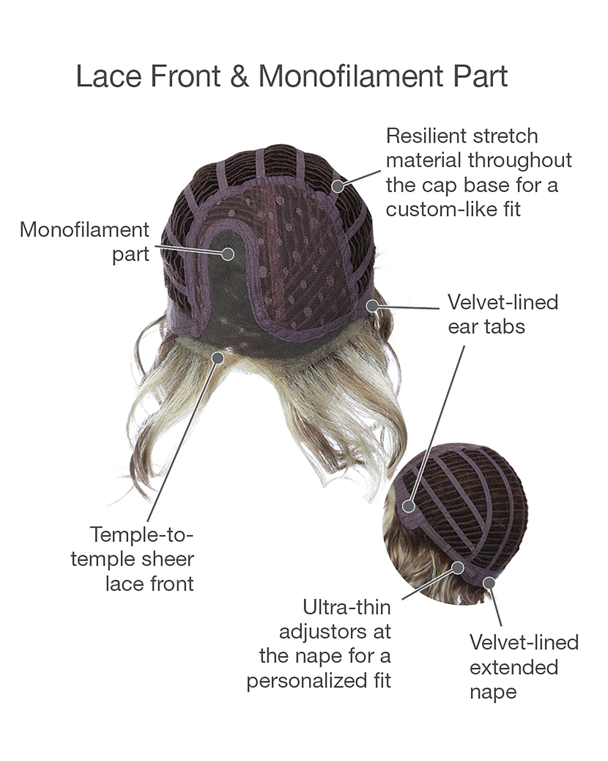 Cap Construction: Temple-To-Temple Lace Front, Monofilament Part, Velvet-Lined Ear Tabs, Velvet-Lined Extended Nape