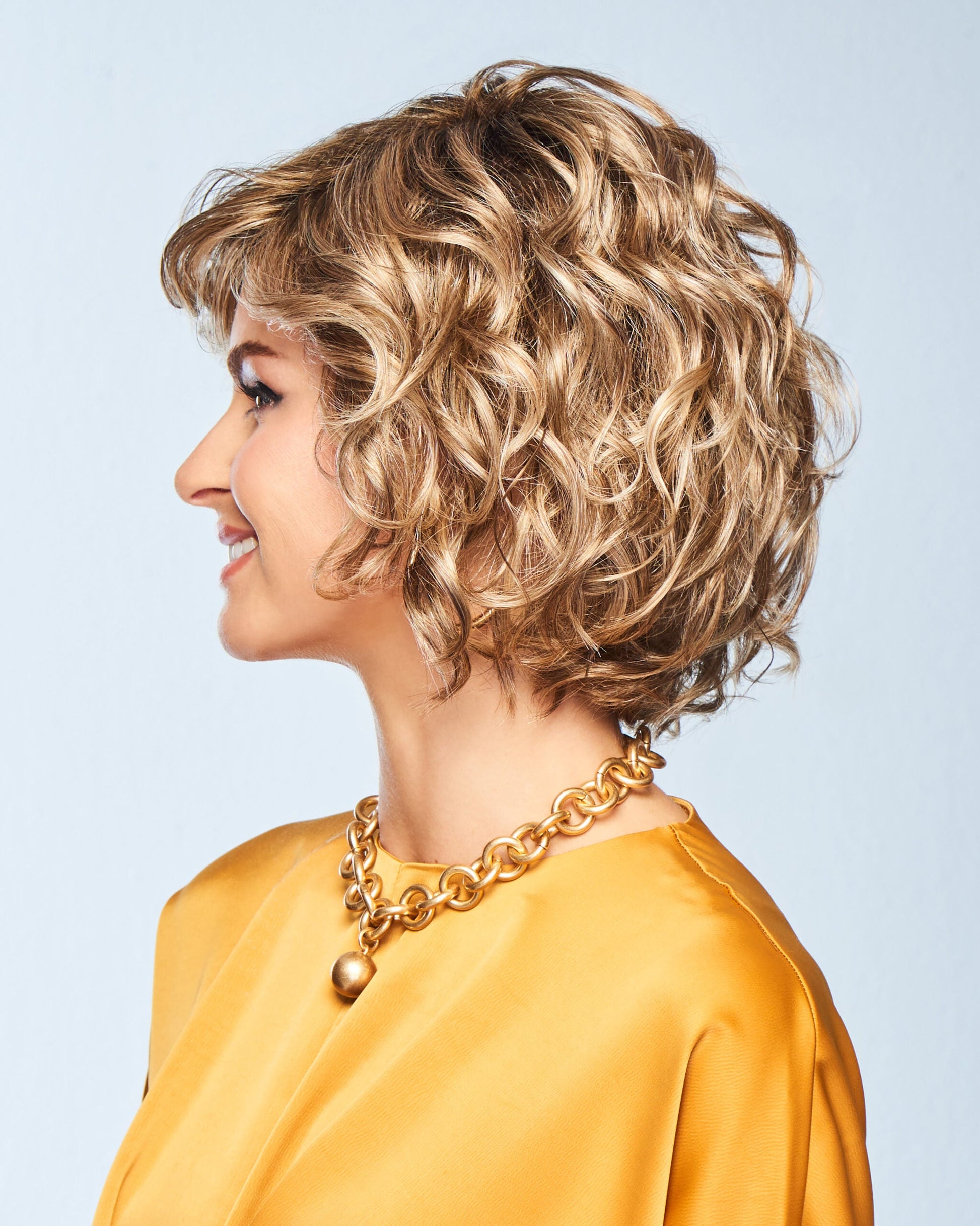 Sweet Talk Laxury is a chic, chin-length layered crop with barrel curls and blunt-cut sides and bottom for a modern, textured look. The hand-tied top and temple-to-temple lace front offer a natural and secure fit, while the velvet-lined ear tabs and extended nape provide extra comfort for all-day wear. Made with Kanekalon Flexlite® Fiber, this wig offers styling versatility with a soft, natural appearance.