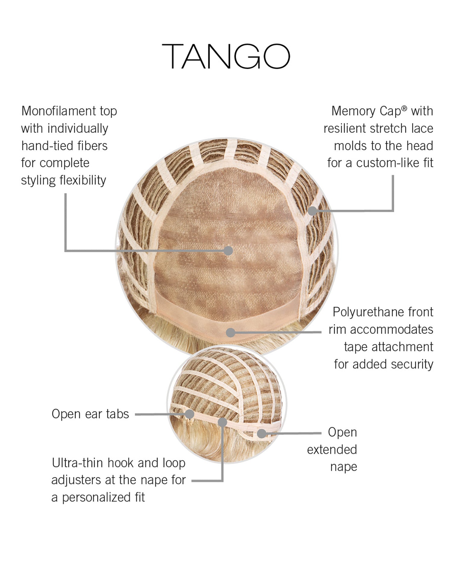 With short all over layers and a Sheer Indulgence™ monofilament top, this sophisticated salon cut is the epitome of easy and varied styling options. Classic, yet exotic—like the TANGO!
