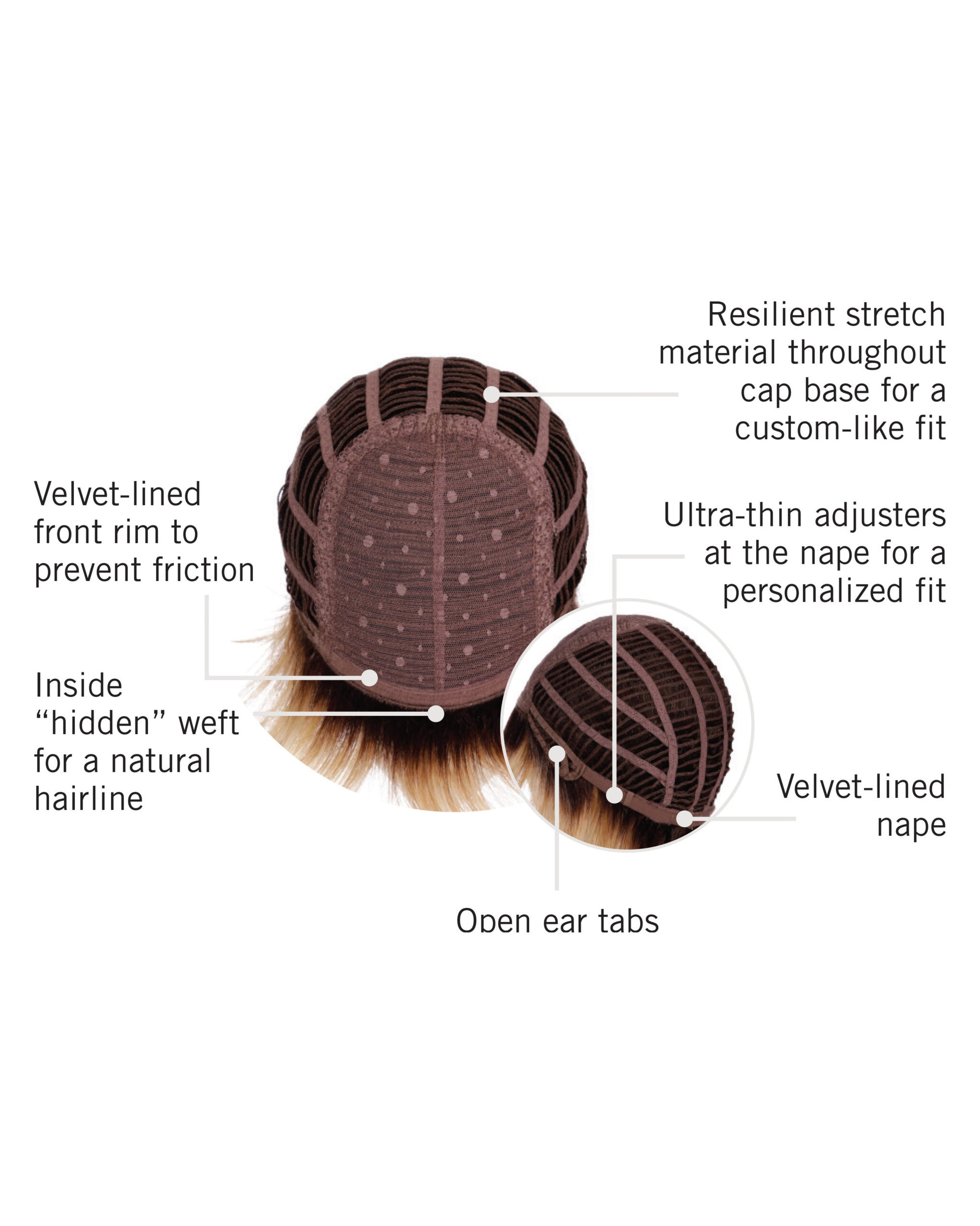 Everything old is new again with Vintage Volume! Reminiscent of the popular ‘70’s shag, this classic silhouette has feathered, side-swept bangs and layered, chin-length sides that graduate to a collar-length nape. Comb the sides forward or brush them back to change up your look in an instant. The combination of the Velvet-Lined Front Rim, Inside “Hidden” Weft, Open Ear Tabs, and Velvet-Lined Nape provides added comfort and breathability. Tru2Life® Heat-Friendly Synthetic Hair offers styling versatility, making this wig both stylish and practical.
