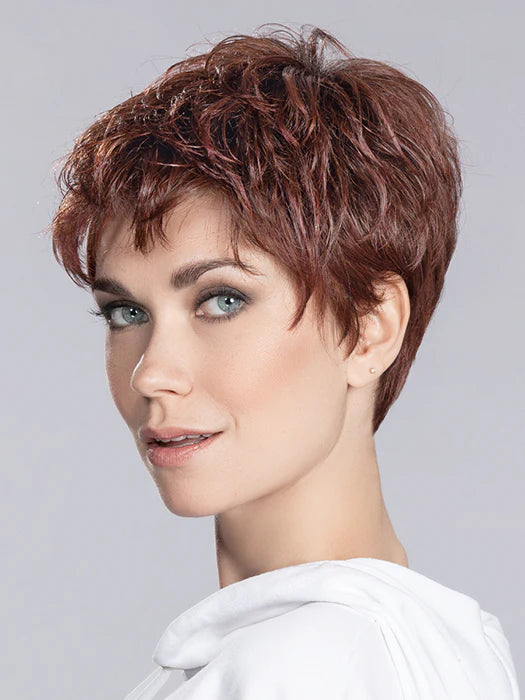 The Yoko Wig is a short, stylish pixie wig with longer lengths at the top, creating a modern and edgy look. It is made from heat-friendly synthetic fiber, allowing you to change up your style from smooth and sleek to textured and edgy with ease. The wig features an extended lace front and a mono crown, which provides a natural-looking hairline and hair growth appearance at the crown of the wig. The cap design ensures a comfortable fit, even for extended wear. With its heat-friendly synthetic fiber, you can easily style the Yoko wig to suit any occasion. The wig is perfect for anyone looking for a versatile and modern hairstyle that can be adapted to any outfit or occasion.