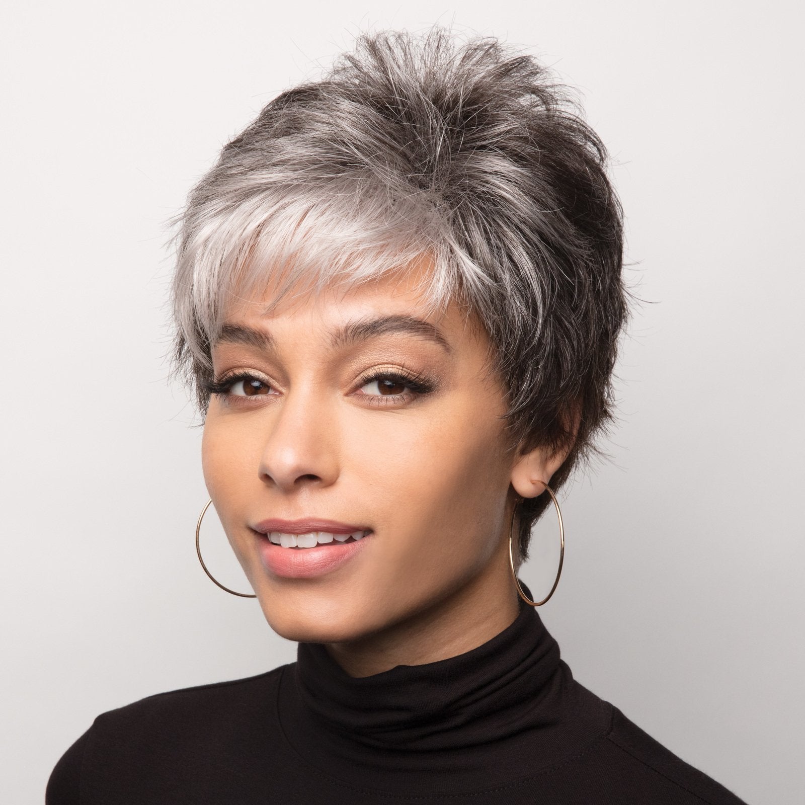 Zoe from the Rene of Paris Hi-Fashion Collection is a short-length synthetic wig that offers a modern pixie look enhanced by multiple layers and textures. This straight, ready-to-wear style is machine-made and features adjustable tabs in the back nape area, providing a comfortable fit. The result is a natural appearance that is both fashionable and easy to wear.